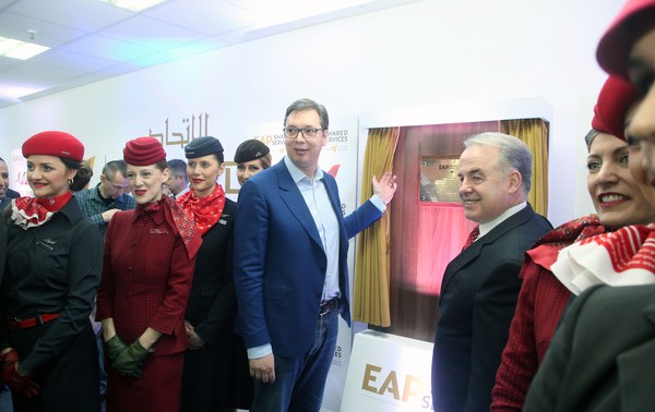 Вучић је, такође, пренео захвалност Уједињеним Арапским Емиратима (УАЕ) и шеику Мухамеду Ал Нахјану на свему што су учинили за Србију, као и компанији "Етихад", додавши да захваљујући пријатељству Београда са Абу Дабијем можемо да се похвалимо успесима "Ер Србије".
