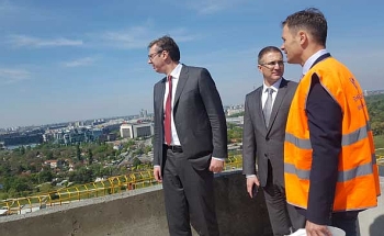 Председник Владе Републике Србије Александар Вучић обишао је данас, са потпредседником Владе и министром унутрашњих послова Небојшом Стефановићем и градоначелником Београда Синишом Малим, радове на последњем спрату куле пројекта "Београд на води".