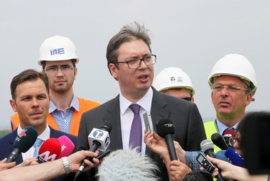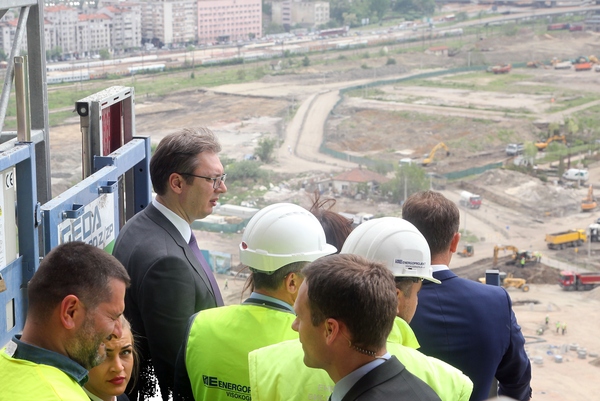 Вучић, који је присуствовао постављању шипова на трећој стамбеној згради "BG Wista", изразио је задовољство динамиком и квалитетом радова.