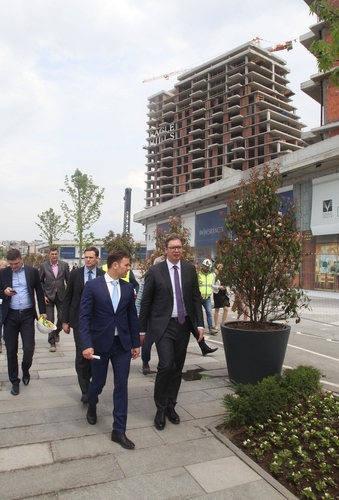 Председник Владе Републике Србије Александар Вучић оценио је данас, приликом обиласка завршних грубих радова на 21. спрату куле Б пројекта "Београд на води", да се изградња одвија по плану, и најавио да ће први станови бити усељиви у априлу наредне године.