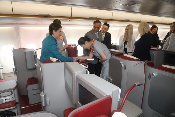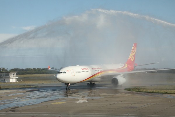 Авионом кинеске компаније "Хајнан ерлајнз" ербас А330-300, који је традиционално дочекан воденим шмрковима, у Србију је допутовало и више од 20 привредника и представника пословних асоцијација из Кине.