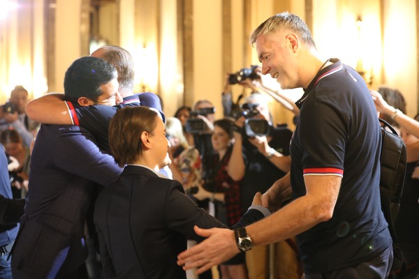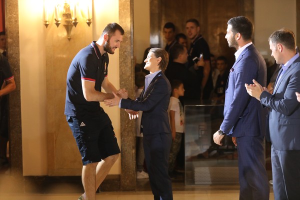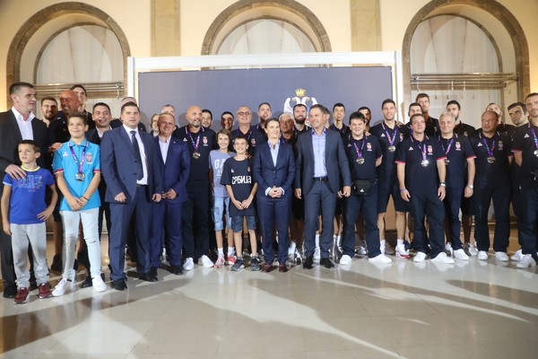Председница Владе Републике Србије Ана Брнабић, министар омладине и спорта Вања Удовичић и градоначелник Београда Синиша Мали примили су вечерас у Скупштини града Београда кошаркаше Србије, који су освојили сребрну медаљу на Европском првенству у Истанбулу.