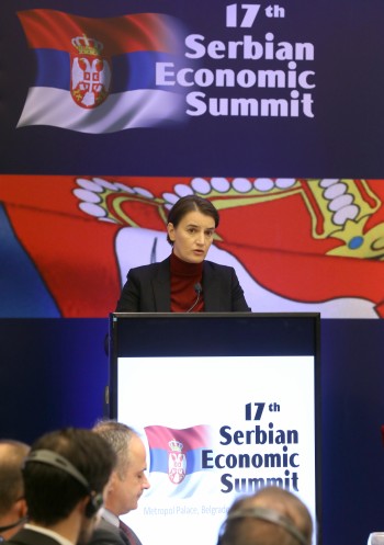Брнабић је, отварајући 17. Српски економски самит под називом "Мапа пута ка унапређењу конкурентности“, истакла да је актуелна влада наставила политику претходне владе, која је започела тешке, али неопходне реформе, смањила јавни дуг, увела фискалну дисциплину и консолидовала јавне финансије.