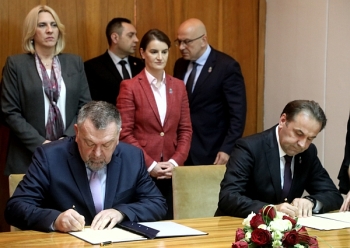 Представници влада Републике Србије и Републике Српске потписали су данас, након заједничке седнице која је одржана у Палати Србија у Београду, више докумената о сарадњи у области ваздухопловства, инфраструктуре квалитета, културе, као и поштанског и телекомуникационог саобраћаја.