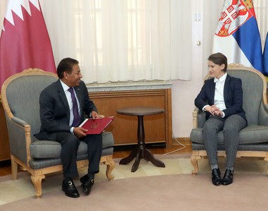 Председница Владе Републике Србије Ана Брнабић примила је данас амбасадора Државе Катар у Србији шеика Мубарака бин Фахада Ал Танија, који јој је уручио позивно писмо председника Савета министара Државе Катар да посети ову земљу.