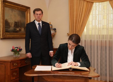 Председница Владе Републике Србије Ана Брнабић уписала се данас, уочи 4. заједничке седнице влада Србије и Словеније, у Златну књигу гостију у дворцу на Брду код Крања.