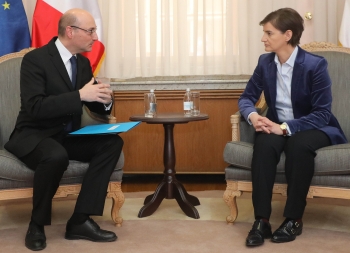Амбасадор Мондолони пренео је премијерки Брнабић опредељење премијера Филипа за даље јачање билатералних односа Србије и Француске на свим нивоима.