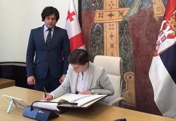 Председница Владе Републике Србије Ана Брнабић, која борави у дводневној званичној посети Грузији, уписала се у Књигу утисака након састанка са председником грузијског параламента Ираклијем Кобакхидзеом.