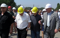 Велимир Илић (први здесна) у обиласку моста "Слобода"