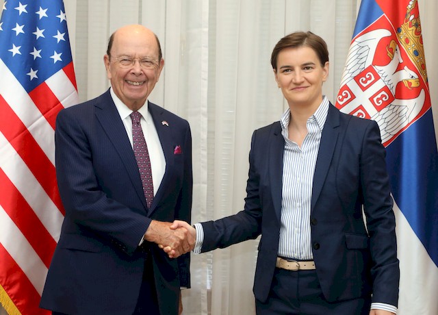 Председница Владе Републике Србије Ана Брнабић изразила је данас захвалност секретару САД за трговину Вилбуру Росу на првој посети нашој земљи, и истакла да је ово прави тренутак за развој наших политичких и економских односа.