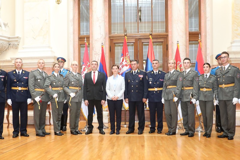 Председница Владе Републике Србије Ана Брнабић присуствовала је данас свечаности поводом промоције најмлађих официра Војске Србије, која је одржана испред Дома Народне скупштине Републике Србије.