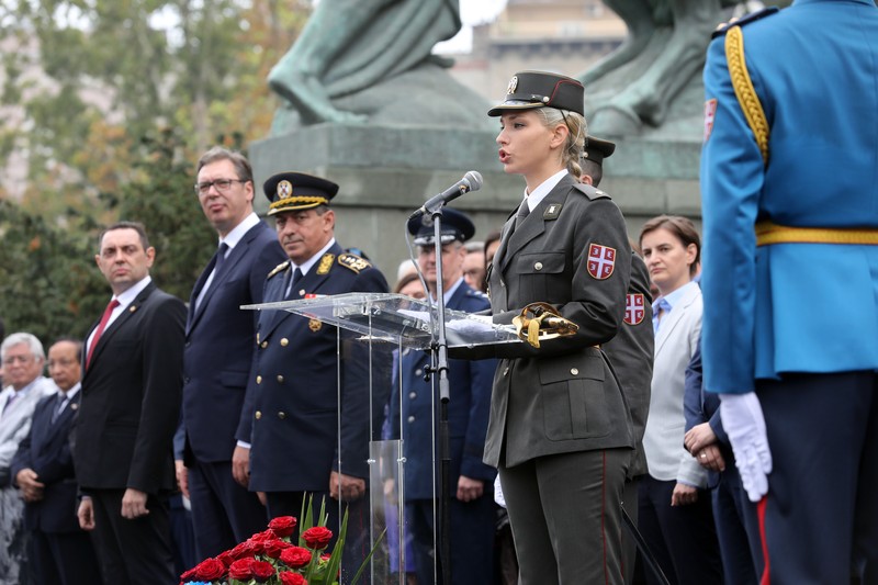 И ето како су се за слободу земље ти сељаци без напора претворили у војнике, најхрабрије, најистрајније најбоље од свих. У свакоме од вас је, драги кадети, и тај сељак и трудбеник и војник и мали каплар који је са 1.300 својих другова отишао да брани своју земљу, и официр и војсковођа и сабрат и ученик Путника, Мишића, Стефановића и Бојовића.... Зато је част кадети бити са вама данас на овом месту, поручио је Вучић.