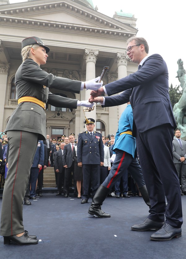 Убеђен сам да сте нестрпљиви да одлучно кренете часним путем којим кроз живот корачају српски фицири. У то име ја вам од срца честитам почетни официрски чин и желим да будете снажна узданица насе отаџбине и наших грађана. Верујемо у вас, Србија верује у вас, живела Војска Србије, живела Србија, поручио је Вучић.