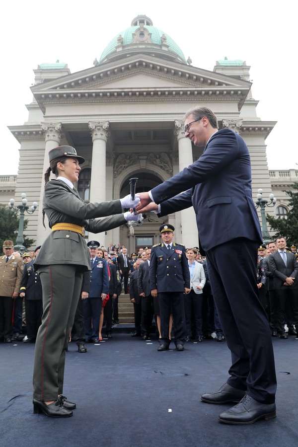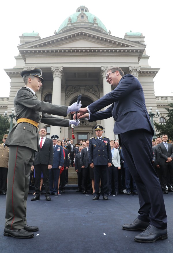 Председник Србије Александар Вучић поручио је на свечаности да су будући официри одлучили да служе отаџбини и да својим знањем, вештином и снагом свог морала и родољубља штите независност и слободу Србије.