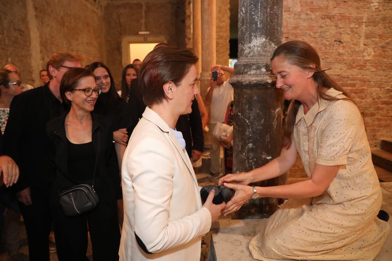 Брнабић је уочи отварања, заједно са нашим уметницима који учествују на Салону, обишла поставку и разговарала о томе како држава може додатно да унапреди услове за њихово стваралаштво.
