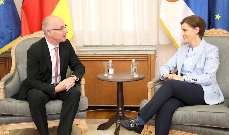 Председница Владе Републике Србије Ана Брнабић примила је данас у куртоазну посету амбасадора Савезне Републике Немачке у Србији Томаса Шиба, са којим је том приликом разговарала о даљем унапређењу економске сарадње, процесу евроинтеграција Србије и о значају регионалног повезивања.