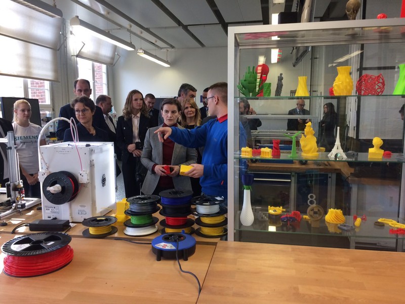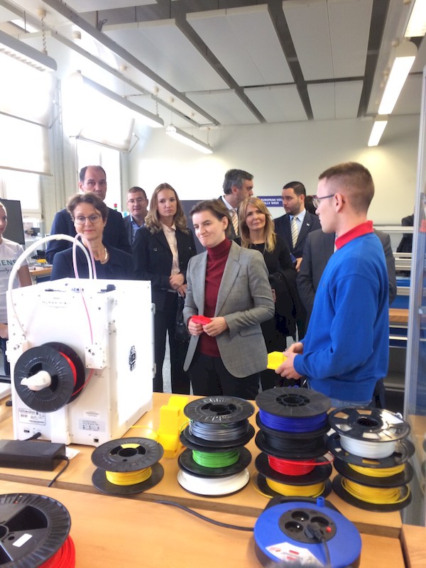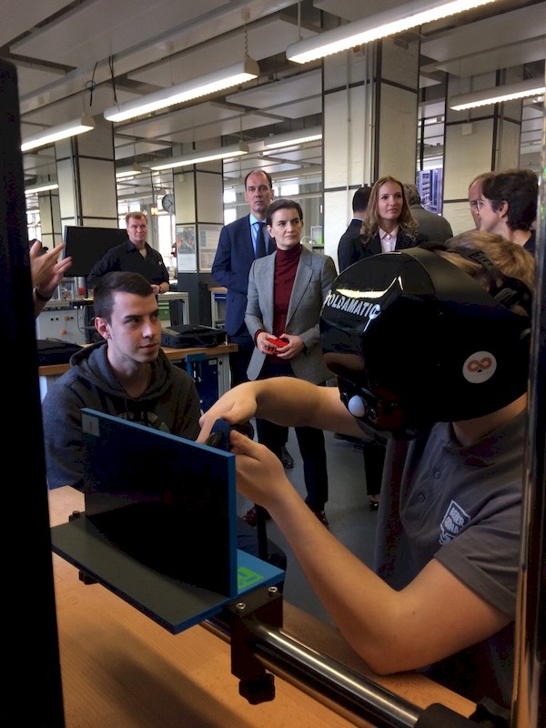 Премијерка је, у друштву шефа за међународне односе Сименсовог образовног програма Јирнега Сибела, обишла просторије за механичку, као и оне за електронску обуку, која обухвата и развој апликација за 4.0 индустрију.