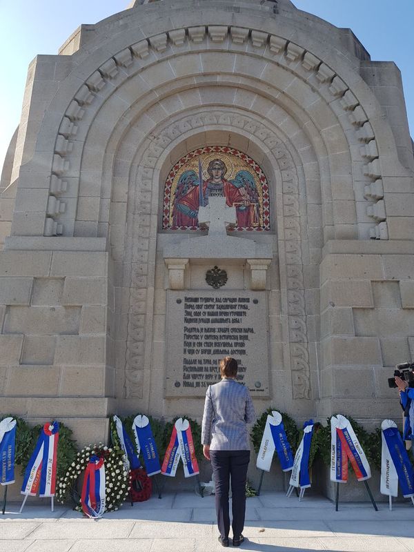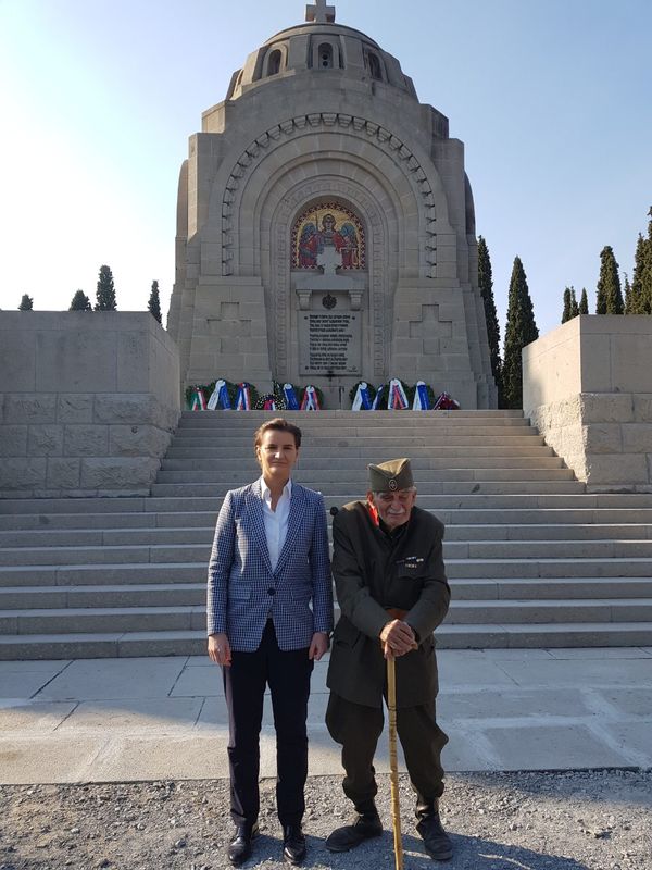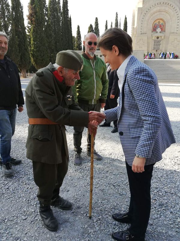 Брнабић је положила цвеће на гробљу, на чијем се месту налазила главна пољска болница српске војске током рата, а на крају обиласка је са "чика Ђорђем" попила чашицу ракије у част палих ратника, уз његову поруку да ратнике не заборавимо, али да чувамо оно што имамо.