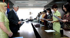 У Министарству правде Владе Републике Србије 11 новоизабраних судија за прекршаје које је именовала Влада Србије положило је данас заклетву пред министром правде Зораном Стојковићем, који им је пожелео успешан рад и часно и поштено обављање судијске функције.