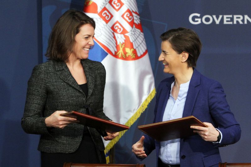 Председница Владе Републике Србије Ана Брнабић и директорка Светског економског форума за Европу и Евроазију Мартина Ларкин потписале су данас Меморандум о разумевању између Републике Србије и Светског економског форума.