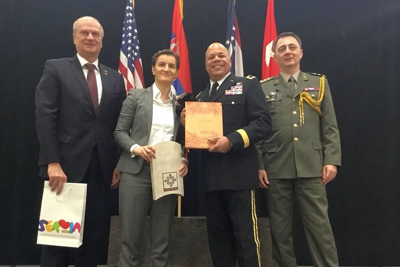 Председница Владе Републике Србије Ана Брнабић започела је данас посету Сједињеним Америчким Државама сусретом са командантом Национале гарде Охаја, генерал-мајором Џоном Херисом.