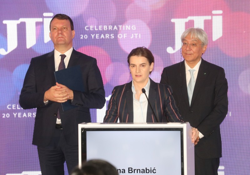 Председница Владе Републике Србије Ана Брнабић обишла је данас компанију "Japan Tobacco International" (ЈТИ) у Сенти, поводом пуштања у рад нове производне линије у фабрици и обележавања 20 година постојања компаније на глобалном нивоу.