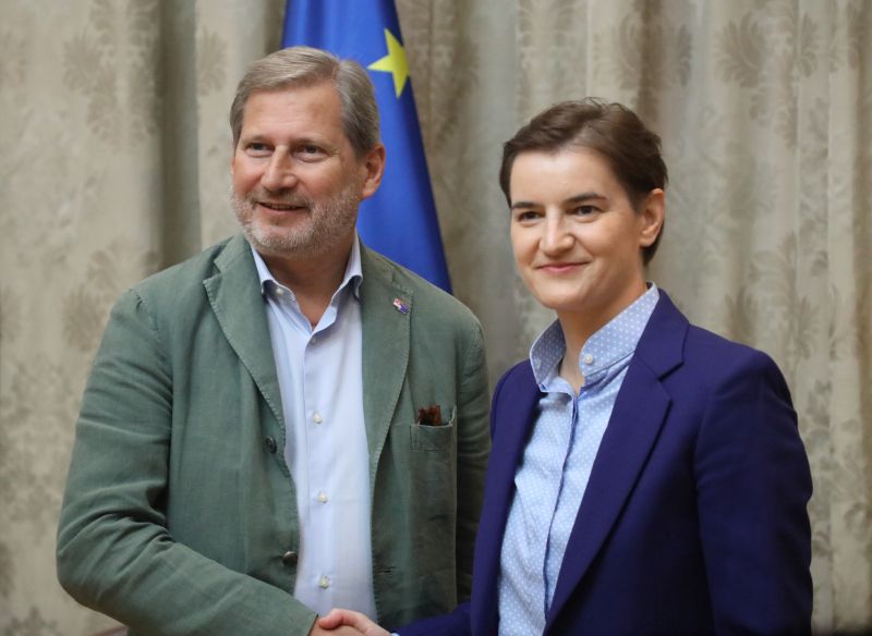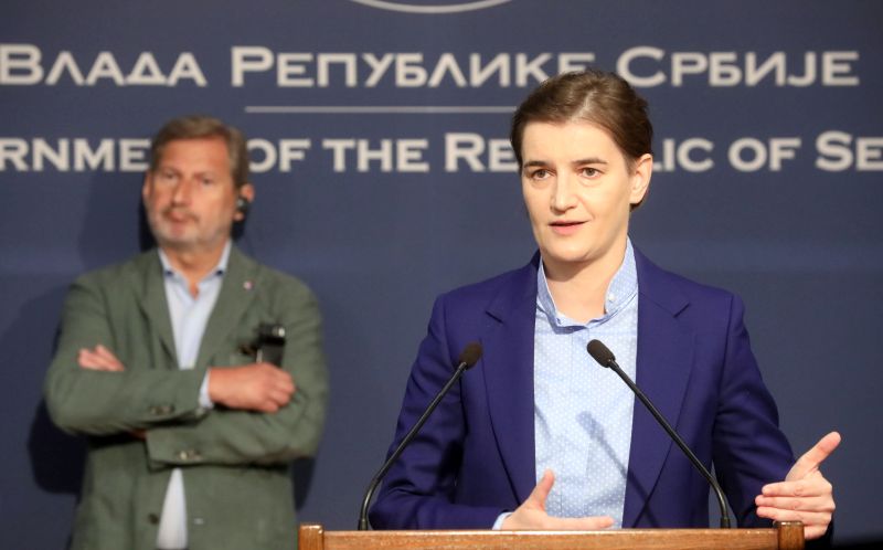 Брнабић је на конференцији за новинаре, након састанка са европским комесаром за суседску политику и преговоре о проширењу Јоханесом Ханом, истакла да Србија свакодневно ради на имплементацији препорука из извештаја Европске комисије о напретку на путу евроинтеграција.