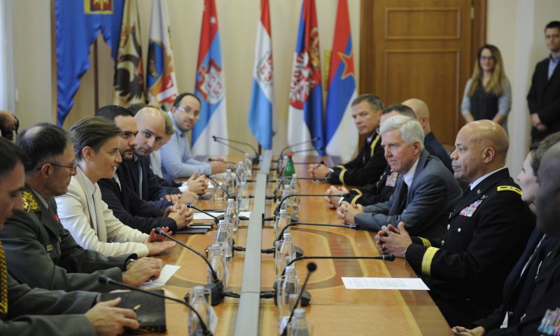 Председница Владе Републике Србије Ана Брнабић састала се данас са члановима делегације Националне гарде Охаја, коју је предводио генерал-мајор Џон Херис.