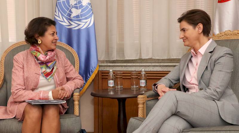 Председница Владе Републике Србије Ана Брнабић разговарала је данас са председником Парламентарне скупштине ОЕБС-a Георгом Церетелијем и регионалном директорком Уницефа за Европу и Централну Азију Афшан Кан, који бораве у посети Београду, где учествују на 141. заседању Интерпарламентарне уније (ИПУ).