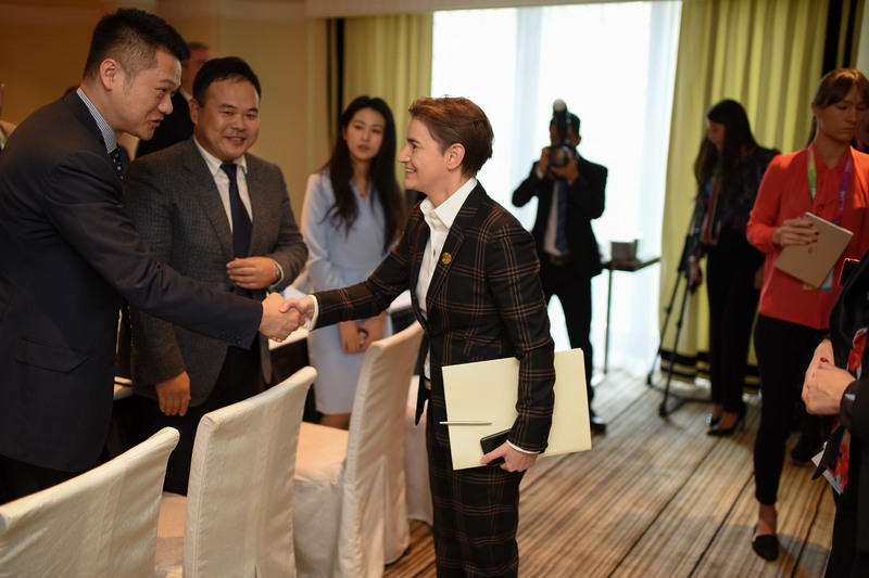 Брнабић је, такође, у Шангају разговарала и са потпредседником компаније Хуавеј и председником те компаније за Европу Ли Јианом.