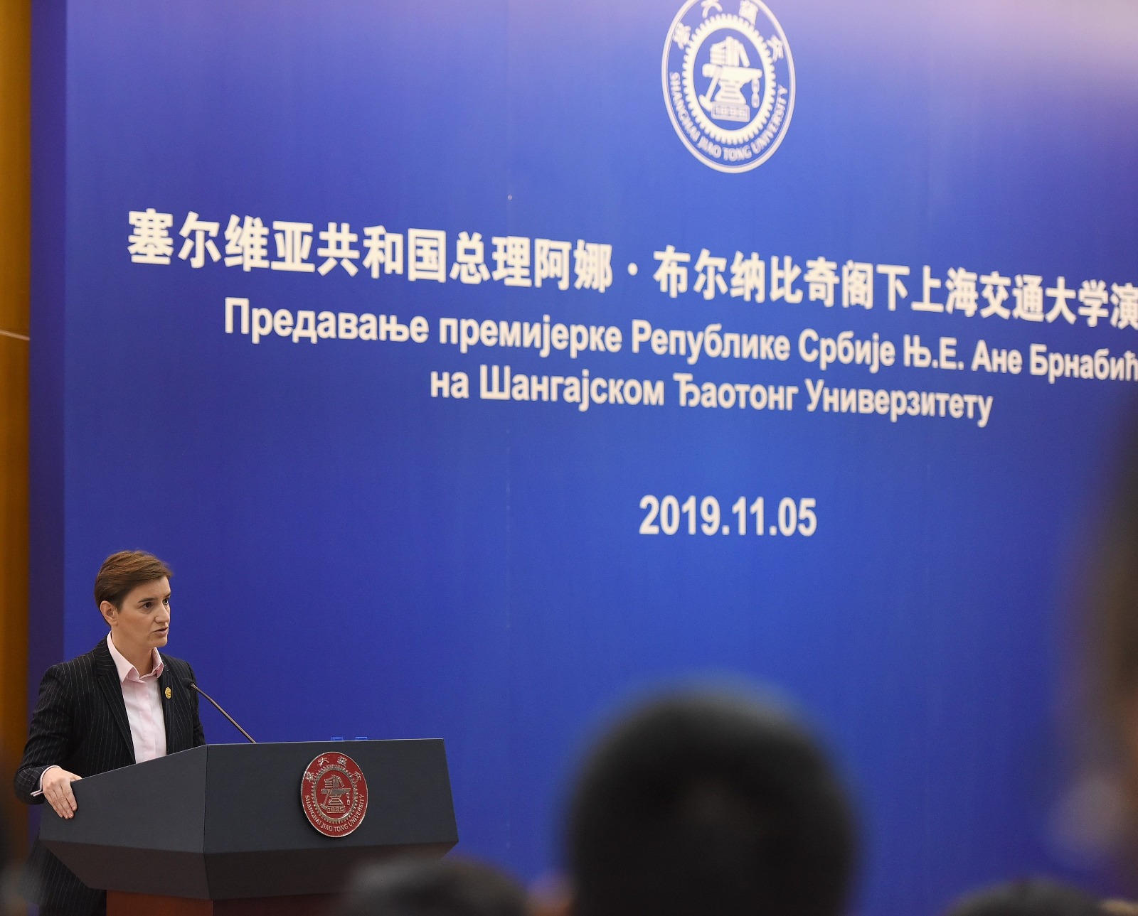 Председница Владе Републике Србије Ана Брнабић одржала је данас, у оквиру посете Кини, предавање студентима Ђаотонг универзитета, другог по величини у Шангају, основаног 1896. године.