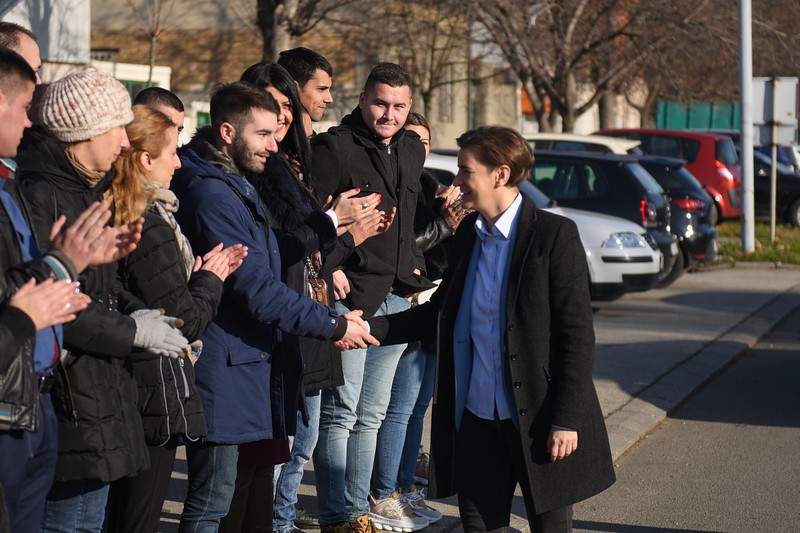 Брнабић је у обраћању ученицима и наставницима Средње машинске школе „Панчево“ истакла да сада радимо на довођењу што више иновативних компанија, уз напомену да у њиховим истраживачким центрима плате износе више од 1.000 евра.