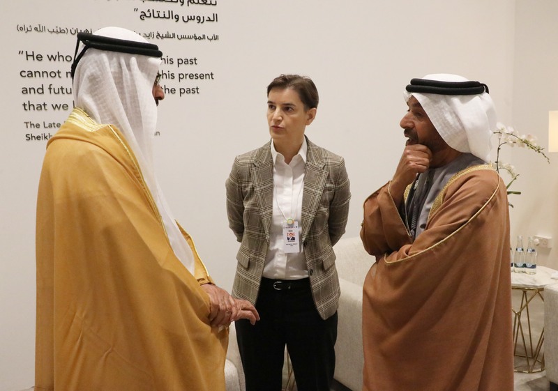 Председница Владе Републике Србије Ана Брнабић разговарала је данас у Абу Дабију са принцем престолонаследником шеиком Мухамедом бин Заједом Ал Нахјаном уочи почетка обележавања Недеље одрживог развоја (Abu Dhabi Sustainability Week - ADSW), која представља глобалну платформу за убрзање одрживог развоја у целом свету.