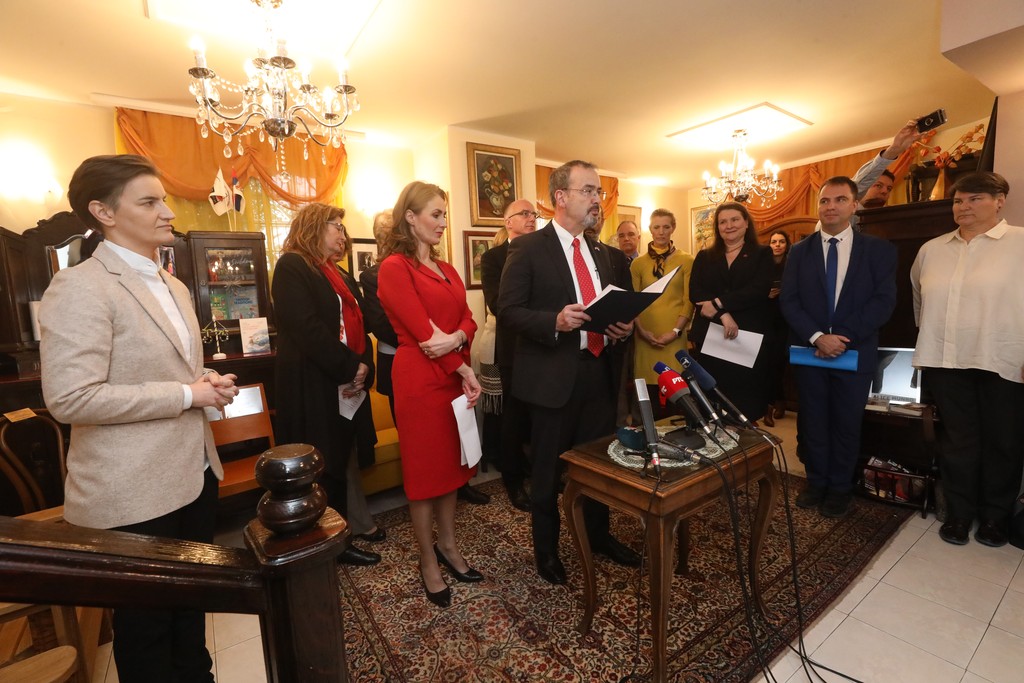 Поред председнице Владе, скупу су присуствовали и поверница за заштиту равноправности Бранкица Јанковић, шеф Делегације Европске уније у Србији Сем Фабрици, као и амбасадори држава у којима су нобеловке живеле и радиле: Шведске, Норвешке, Сједињених Америчких Држава, Немачке, Аустрије, Велике Британије и Канаде.