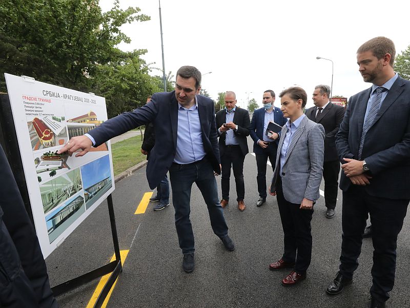 Премијерка је у Крагујевцу данас обишла радове на траси државног пута кроз Крагујевац, које финансира Влада Србије у вредности од 50 милиона динара, као и радове на реконструкцији зграде Градске тржнице која је подигнута 1929. године.