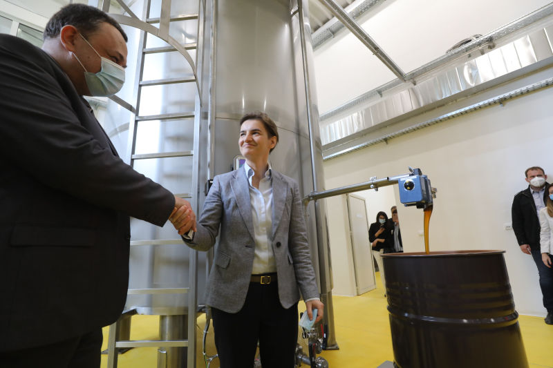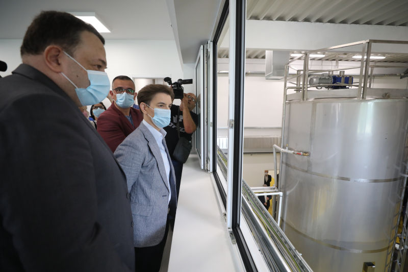 Брнабић, која је отворила погон заједно са министром пољопривреде, шумарства и водопривреде Браниславом Недимовићем и председником Општине Рача Ненадом Савковићем, истакла је да је овај пројекат комплетно урађен – од идеје до реализације и пуштања у рад.