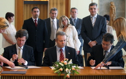 Поред Динкића, уговор су потписали и представник Европске инвестиционе банке Ромуалдо Маса Бернучи, министар за међународне економске односе СЦГ Предраг Ивановић и директор Дирекције за путеве Србије Бранко Јоцић.