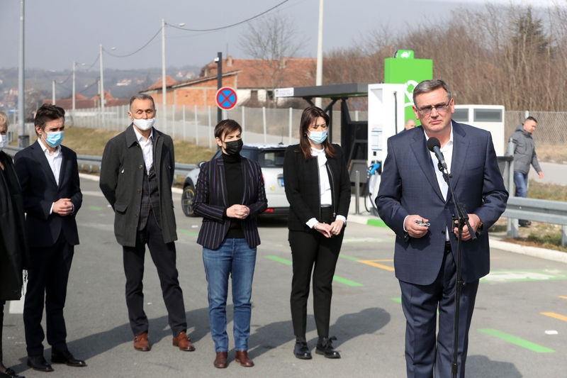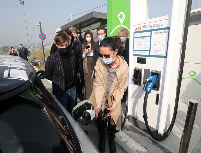 Брнабић је истакла да ће и пуњач за електричне аутомобиле, који је данас, такође, пуштен у рад на наплатној станици Београд, допринети смањењу аерозаграђења у земљи.