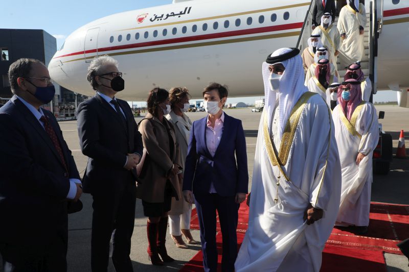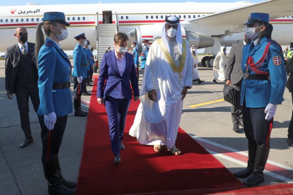 Председница Владе Републике Србије Ана Брнабић дочекала је данас на Аеродрому „Никола Тесла“ престолонаследника и председавајућег Канцеларији за хуманитарне послове и омладину Краљевине Бахреин шеика Насера бин Хамада Ал Калифе.