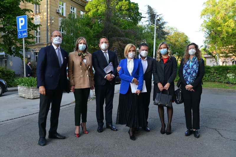 Јоксимовић и Вархељи су у пратњи директорке Института "Батут" Верице Јовановић обишли контејнере за ПЦР тестирање, који су донација ЕУ.