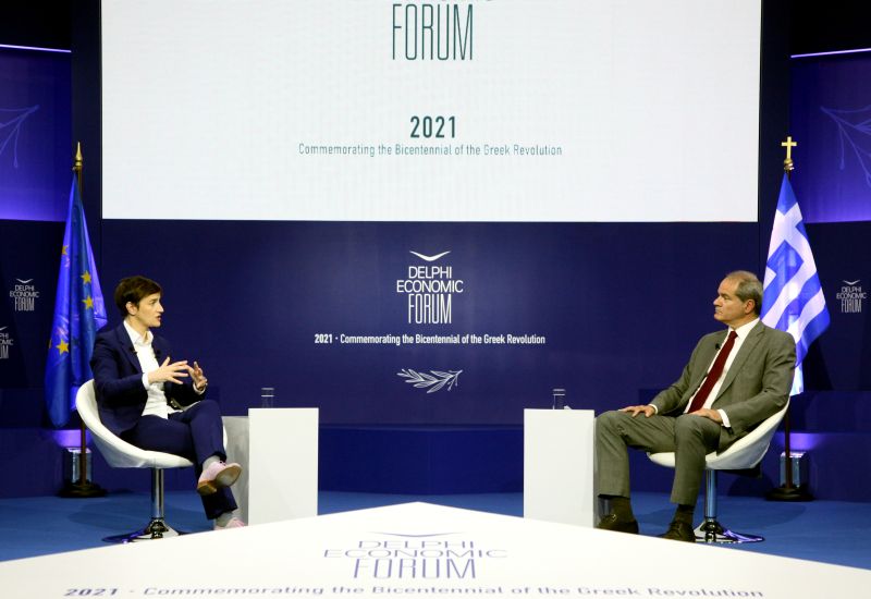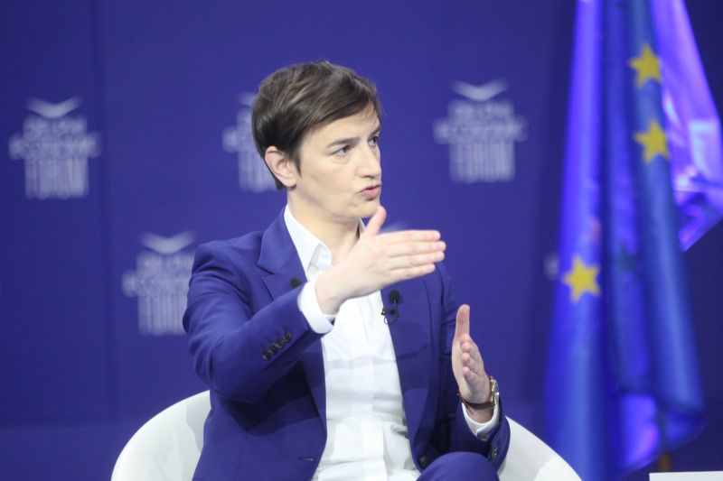 Брнабић је, на Делфи економском форуму, у разговору са главним и одговорним уредником дневника „Катимерини“ Атанасиосом Елисом, упитана за ситуацију у вези са Косовом, рекла да је, иако је дијалог требало да подстакну Вашингтонски споразум и именовање специјалног изасланика ЕУ, нажалост дошло до промена у Приштини.