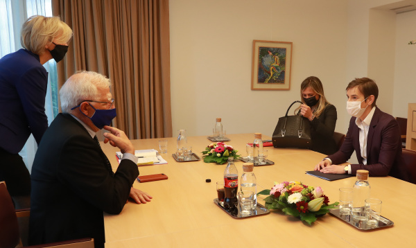 Брнабић, која борави у посети Бриселу, где ће присуствовати радној вечери за лидере Западног Балкана, разговарала је данас са специјалним представником ЕУ за дијалог Београда и Приштине Мирославом Лајчаком и високим представником Уније за спољну политику и безбедност и потпредседником Европске комисије Жозепом Борелом.