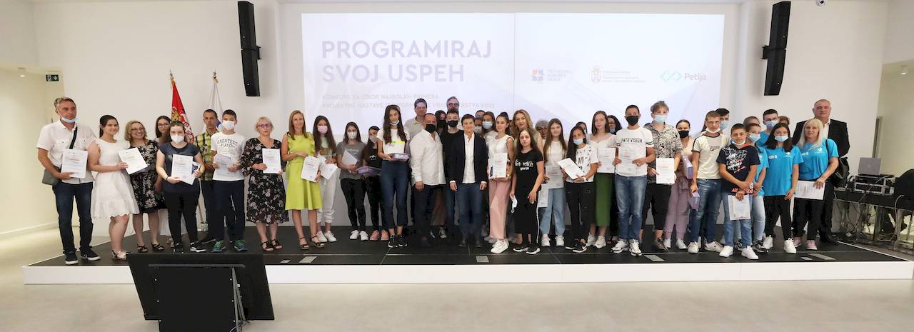 Председница Владе Републике Србије Ана Брнабић и председник Привредне коморе Србије Марко Чадеж уручили су данас награде и признања победницима конкурса „Програмирај свој успех”.