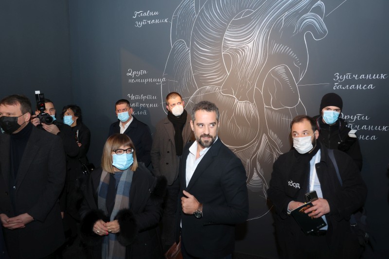 Потпредседница Владе је додала да онако како се у Новом Саду преплићу бројне културне различитости, традиционално и модерно, локално и глобално, конзервативно и креативно, тако нам и уметник, кроз мултимедијални приступ, приказује део универзалних појмова и вредности и истовремено нас упућује и на супротности, које су одавнина преокупирали човечанство, као што су тама и светлост, хаос и космос.