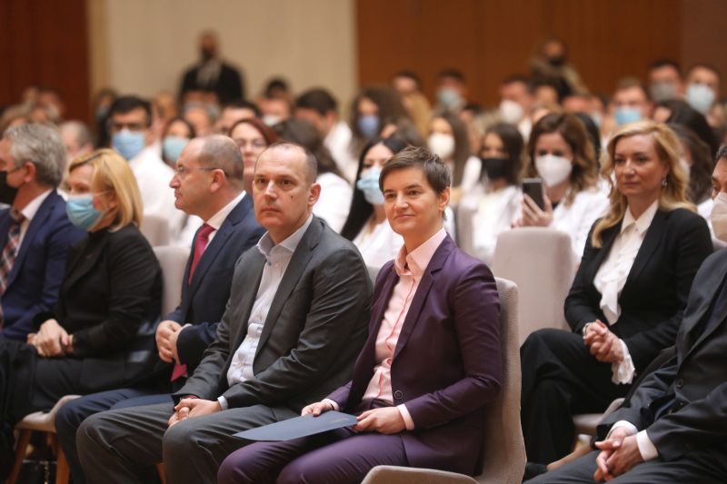 Премијерка Брнабић се, у име државе, захвалила младим лекарима што су изабрали тако тежак и хуман позив који захтева много рада и труда, те што су спремни да тек сада напорно раде.