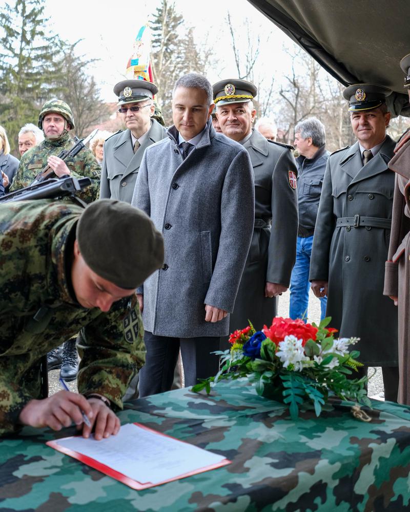 Стефановић, који је присуствовао потписивању текста свечане заклетве, разговарао је са војницима на добровољном служењу и слушаоцима Курса за резервне официре, који су му пренели утиске са првих дана проведених у униформи, али и визије за своје будуће ангажовање у Војсци Србије.