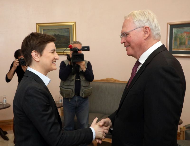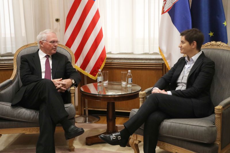 Председница Владе Републике Србијe Ана Брнабић састала се данас са новим амбасадором Сједињених Америчких Држава у Републици Србији Кристофером Хилом.