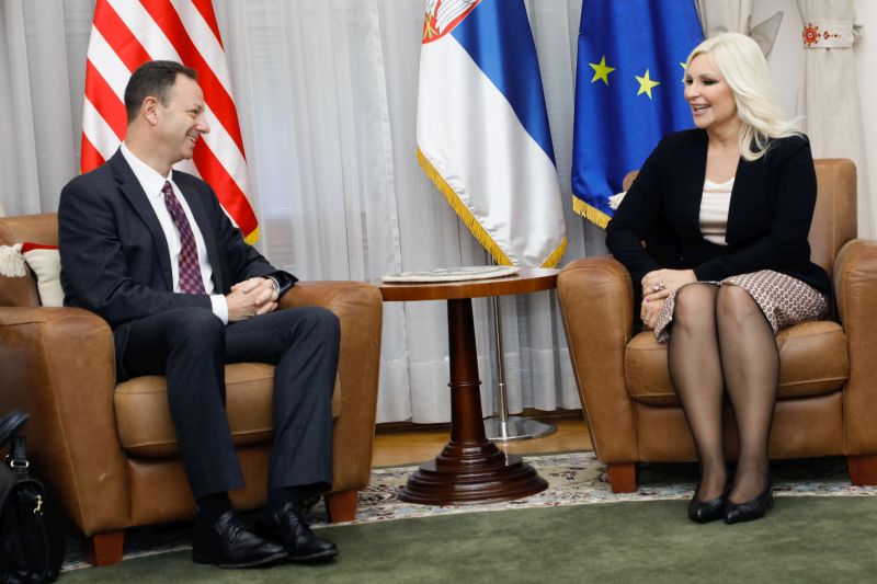 Верујем у то да и у области енергетике постоји огроман потенцијал за унапређење сарадње, имајући у виду могућности за инвестиције у енергетици, за коришћење искуства САД у процесу енергетске транзиције и наше планове кад је реч о новим енергетским капацитетима који би требало да допринесу већој енергетској безбедности Србије, али и региона, додала је она.