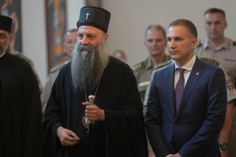Потпредседник Владе Републике Србије и министар одбране Небојша Стефановић дочекао је данас патријарха српског Порфирија, који је посетио Војну академију и обратио се кадетима те академије, Медицинског факултета ВМА, ученицима Војне гимназије и Средње стручне војне школе.
