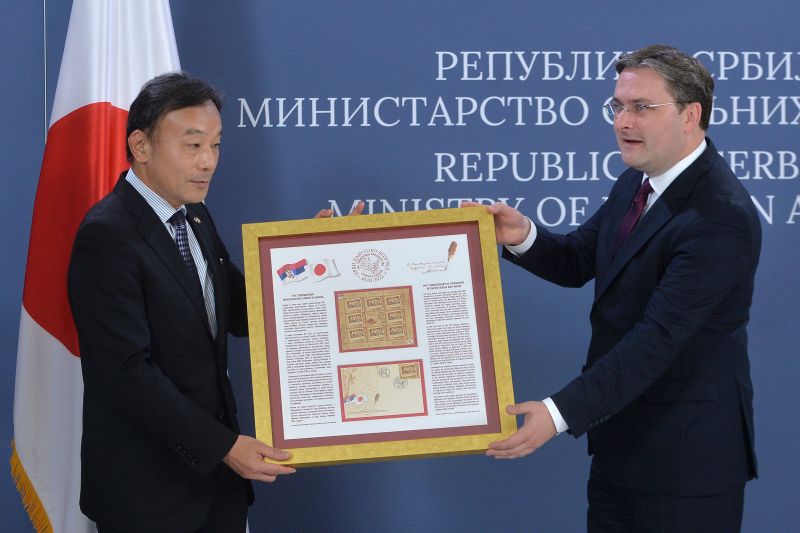 Селаковић је том приликом амбасадору Јапана у Београду Такахику Кацумати уручио и специјално поклон-издање пригодних поштанских марки Поште Србије "140 -годишњица пријатељства Србије и Јапана".
